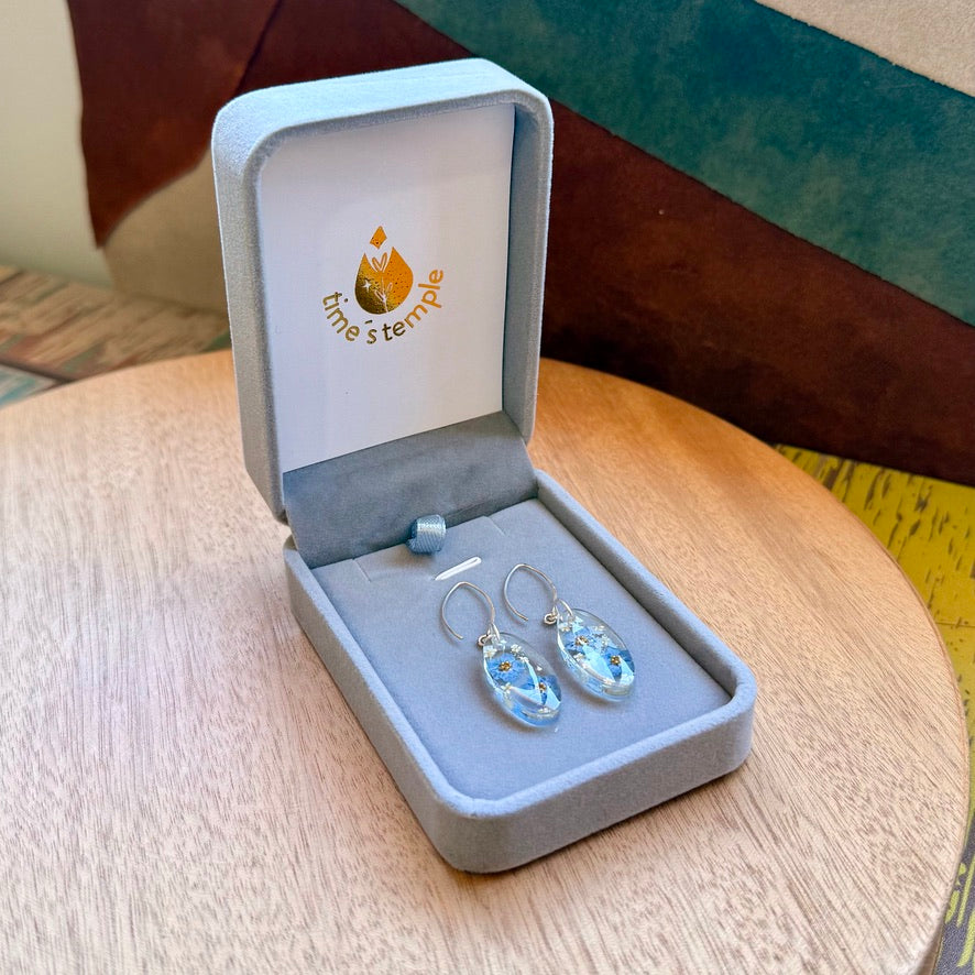 Cada flor es recolectada a mano y pasa por un proceso de secado especial que preserva su color y forma, manteniendo viva la belleza natural en cada joya.